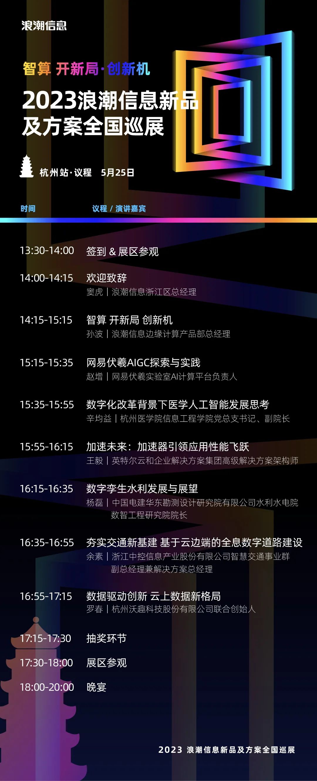 智算 开新局·创新机,2023浪潮信息新品及方案全国巡展,火热进行中。5月25日,杭州站即将重磅开幕,精彩看点先睹为快。