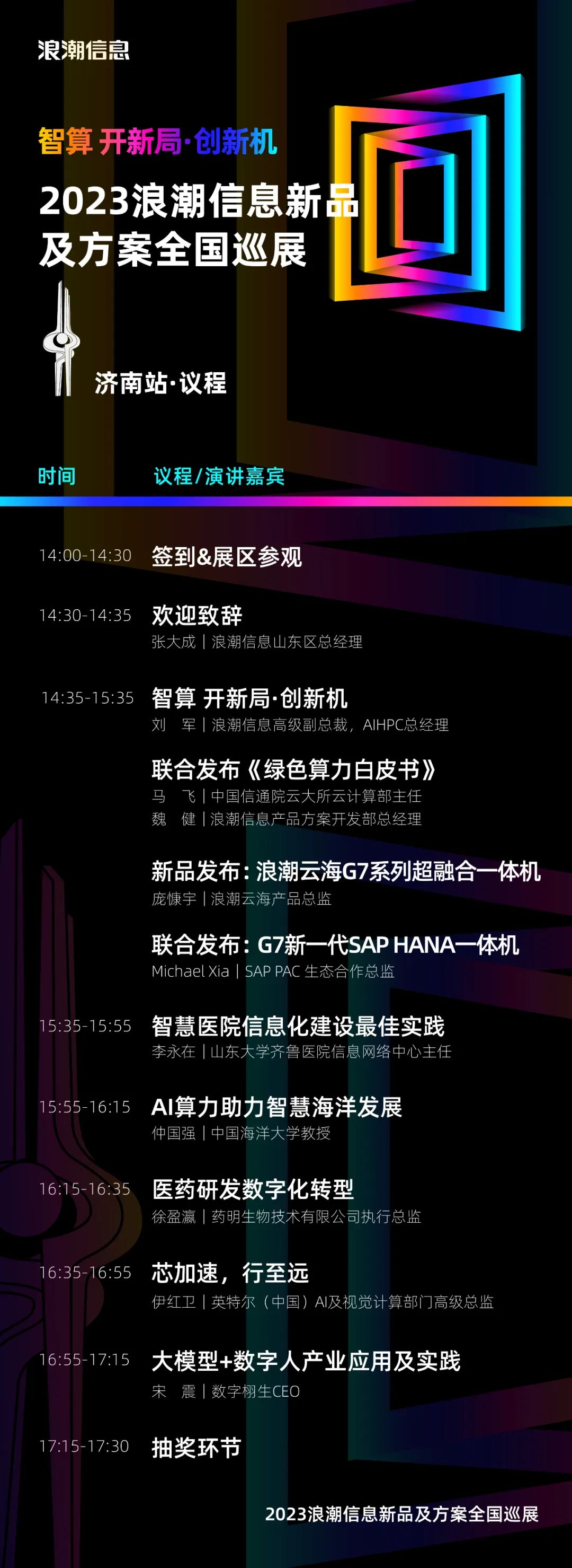 “智算 开新局·创新机”,5月-8月, 2023浪潮信息新品及方案全国巡展将陆续落地20+城市,与3000+行业用户共话数字时代下的智算产业新趋势与新机遇。