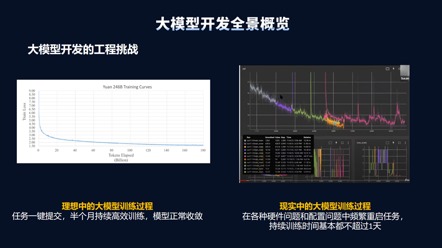 在算法开发层面,PB级数据的爬取、清洗、过滤和质检,大规模预训练的算法设计、性能优化和失效管理,都面临着重重难题。