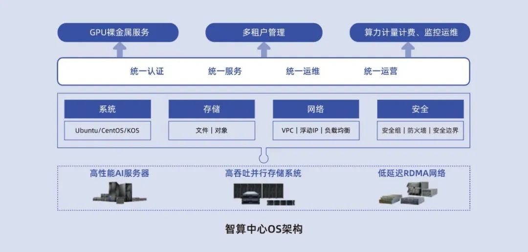 其中,高效的裸金属服务可以在几分钟内部署规模达上千的裸金属节点,并按照需求进行扩容,能够一键获取异构计算芯片、IB、RoCE高速网络、高性能存储等环境,同时实现计算、网络和数据的隔离,确保业务的安全性。