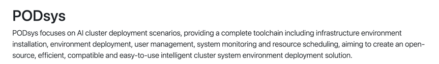 具体来说,PODsys集成了数十个智算集群部署所需的驱动程序、软件和其他安装包,并提供了一系列脚本工具来简化部署过程,而用户只需执行两个简单的命令就能完成整个集群的部署。就拿模型整套流程中的一环「驱动」来说,不管是上层调优,还是底层调优。在过去就像是开盲盒一样,对于客户来说A可能适用,而对B并非适用,由此所带来的成本是巨大的。