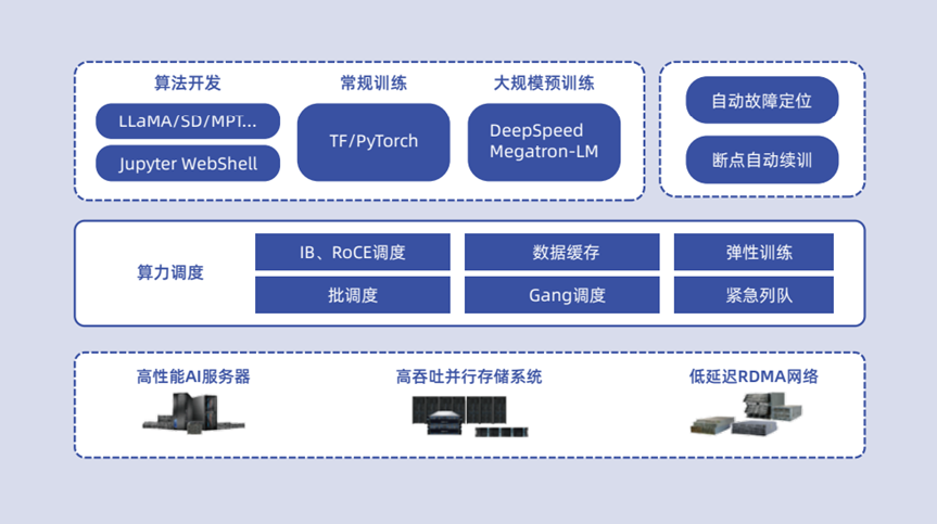 这一层主要针对大模型训练中常见的「训练中断」难题,能够训练异常快速定位,断点自动续训。