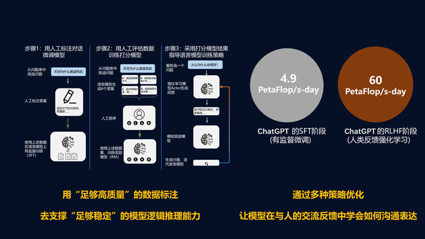 ChatGPT能火爆全球,关键的原因之一,是「它能像人一样思考。这背后的原因,就是基于人类反馈的强化学习(RLHF)」。在微调类ChatGPT模型过程中,主要会涉及三个阶段:有监督微调(SFT)、奖励模型(RM)训练和奖励模型上的近端策略优化(PPO)。在SFT阶段,模型通过模仿人类标注的对话示例来学习通用的类人对话;在奖励模型训练过程中,模型会根据人类反馈来比较不同回复的偏好;在PPO阶段,根据奖励模型的反馈更新模型,通过探索(exploration)和利用(exploitation)发现最优策略。同样的,对于模型微调这个阶段来说,数据质量也至关重要。现在,有了YLink在数据和训练上提供的全方位支持,我们就可以轻松炼丹了。