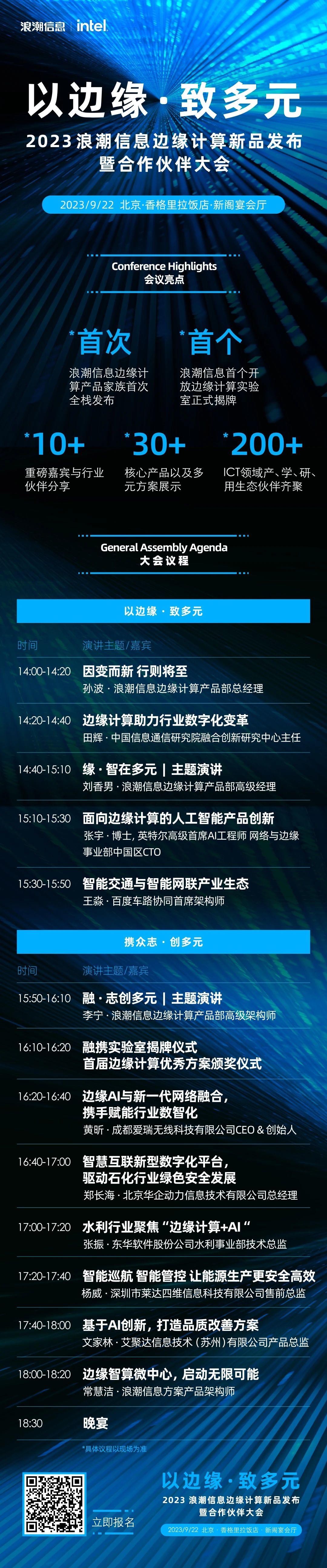 9月22日,浪潮信息边缘计算新品发布暨合作伙伴大会将在北京隆重举行,本次大会主题聚焦“以边缘 致多元”,汇聚ICT产业专家、客户及合作伙伴,共同探讨边缘计算发展的最新机遇与挑战,分享边缘计算最前沿的创新,并首次亮相全栈边缘计算产品及解决方案,揭牌融合、开放的“融携实验室”,携手合作伙伴共同探索千行百业的智慧化转型模式。