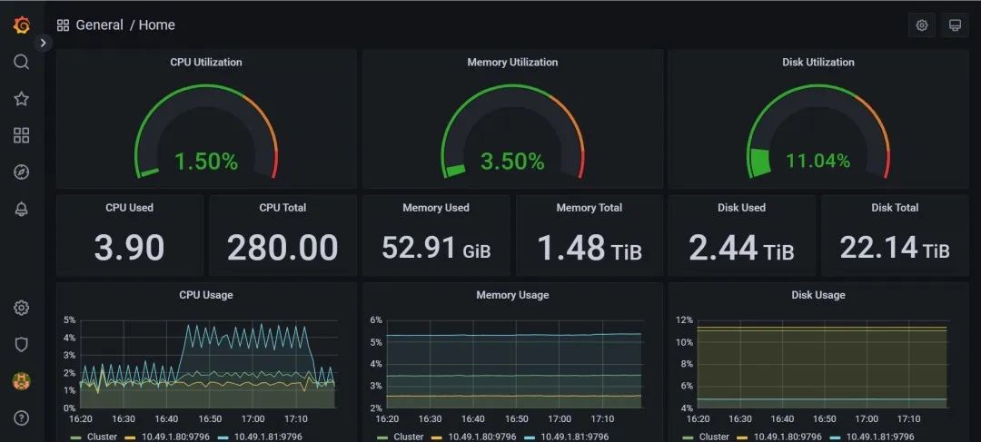 PODsys提供了全面的系统监控和管理,帮助用户实时监控集群的状态和性能指标。通过可视化的界面,用户可以查看集群资源的使用情况、作业的执行情况和性能瓶颈,从而及时调整集群配置和优化作业性能,来保证算力平台的高性能和稳定运行。