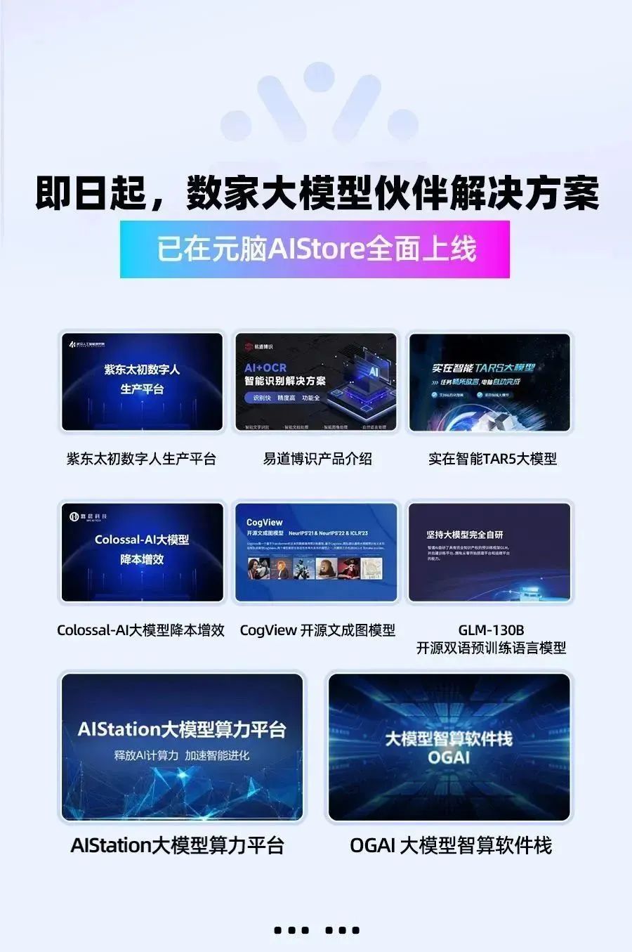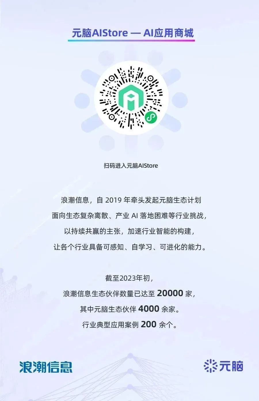 访问 AIStoreAIStore是基于元脑生态打造的商业协作线上平台,作为知识资源平台、交流服务平台和商机孵化平台,赋能“百模”与“千行”的对接,目前已上架200+产品和方案,在智能票据识别、AI工业质检、代码生成、视觉智能标注、AI健康助手等领域实现成功牵手和落地应用,助力千行百业加速AI产业创新,高效释放生产力。