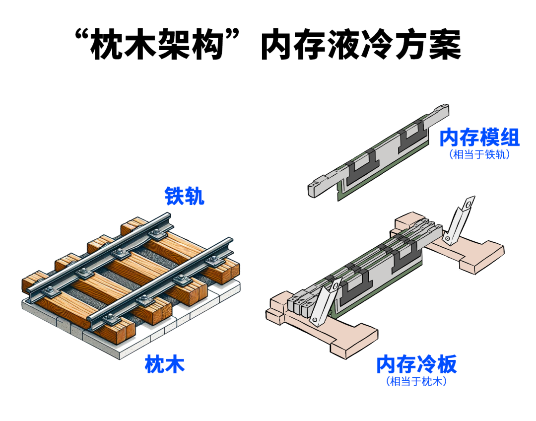 比如,浪潮信息首创了的“枕木架构”来解决内存液冷难题,这种方式相比现有的管路内存液冷方案维护更简单,可以像维护风冷内存一样,无需拆卸散热器和扣具。