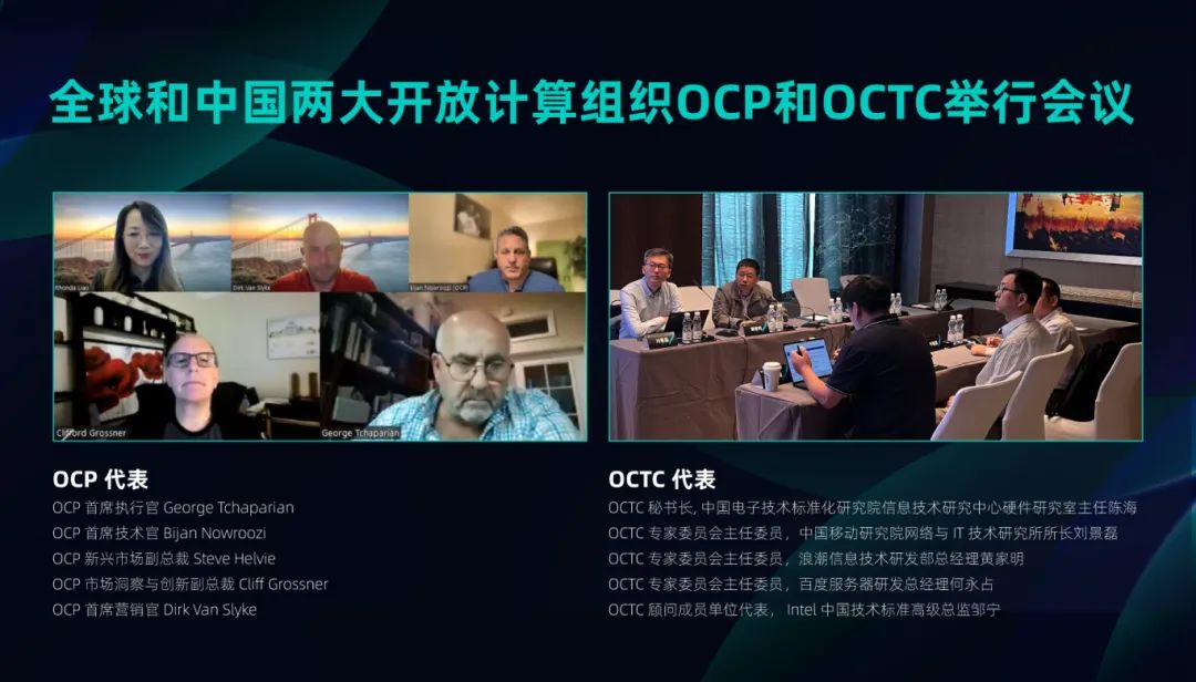 成立首年,通过组织举办和广泛参与开放计算及数据中心领域的技术峰会、产业论坛及技术与标准分享交流会等活动,OCTC积极活跃开放生态,凝聚生态成员共创、共建、共享,并与全球开放计算组织加强合作交流,携手促进开放绿色算力中心创新发展。2023年10月,OCTC作为中国开放计算组织代表与全球开放计算组织OCP基金会举行交流会,双方领导及专家代表首次会晤,希望以“破壁”、“开放”的态度共同推动开放计算的广泛应用,通过数据中心产品技术协同创新、知识产权成果共创共享、标准规范共建等,加速行业数智化、绿色高效发展。