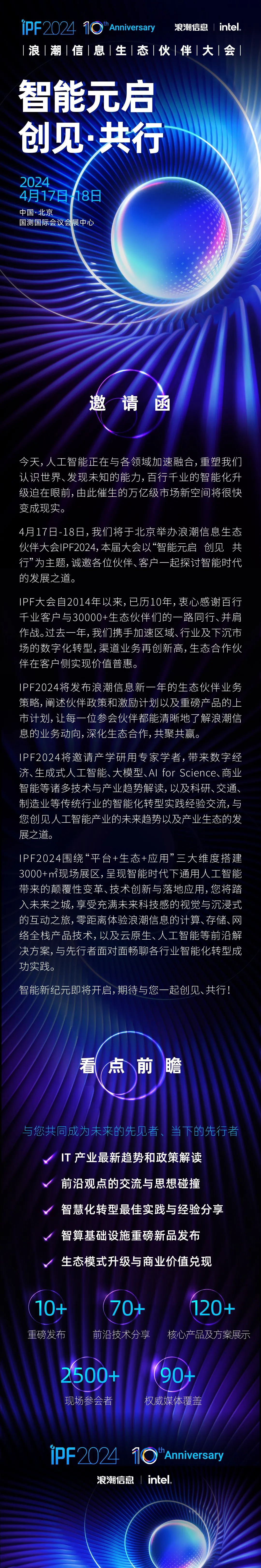官宣:IPF2024浪潮信息生态伙伴大会定于4月17-18日举办