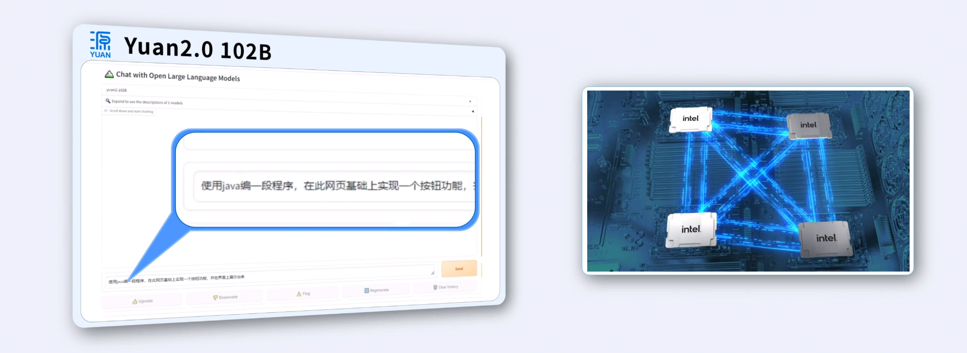 在企业应用最多的代码生成场景,AI通用服务器基于4颗英特尔至强处理器,单机就可运行千亿参数的源2.0生成代码,并描述代码的功能、使用和修改方式,提升代码人员工作效率。
