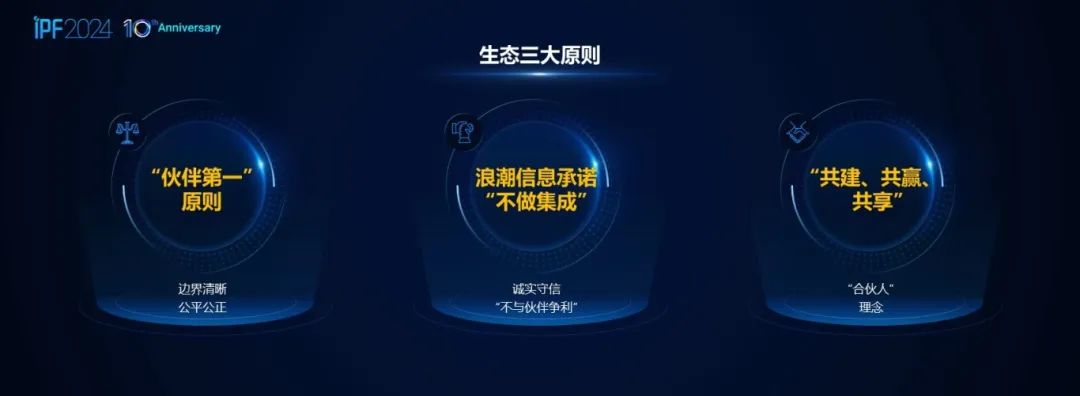 毛柏林最后强调说,坚持“伙伴第一”、承诺“不做集成,不与伙伴争利”、秉持“合伙人理念”,仍然是浪潮信息生态建设的三大核心原则,将一以贯之,与伙伴“共建、共赢、共享”元脑生态。