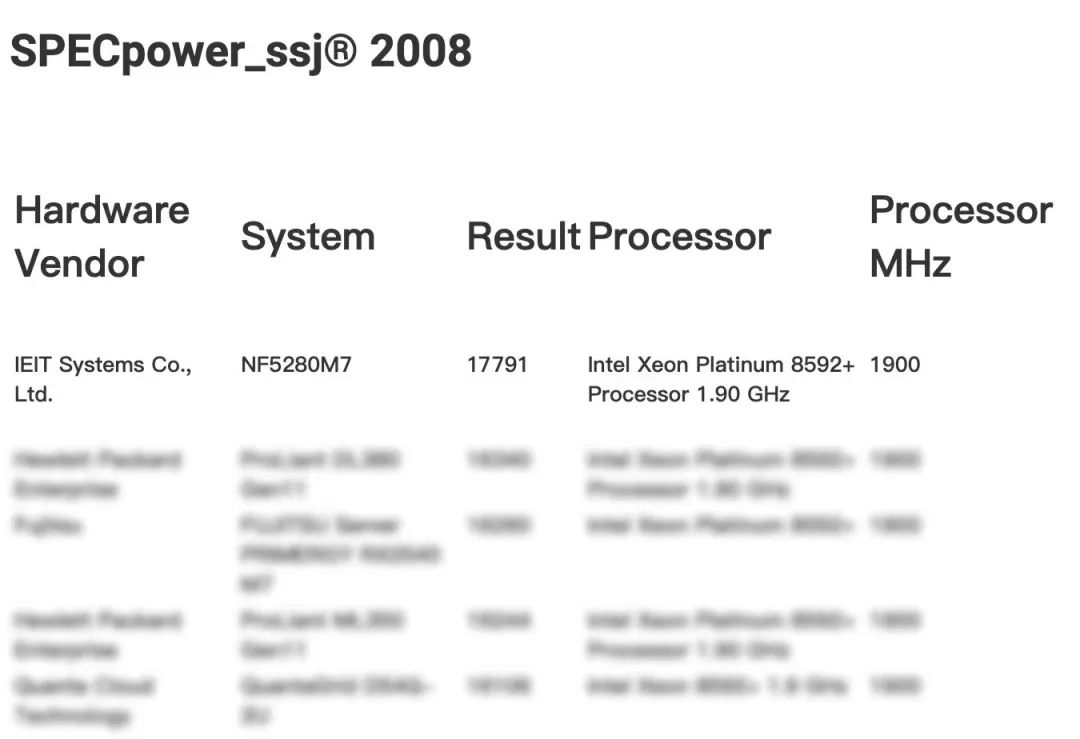 日前,国际权威的标准性能评测机构(SPEC)公布SPECpower_ssj2008服务器能效测试榜单,浪潮信息元脑服务器NF5280G7以17791分刷新了SPEC Power创榜以来Intel平台整机能效最佳纪录,该产品基于英特尔第五代处理器(Emerald Rapids),相比之前最好成绩(基于Sapphire Rapids平台),在相同的时间内,NF5280G7可以多完成12%工作的同时提升能源利用率。