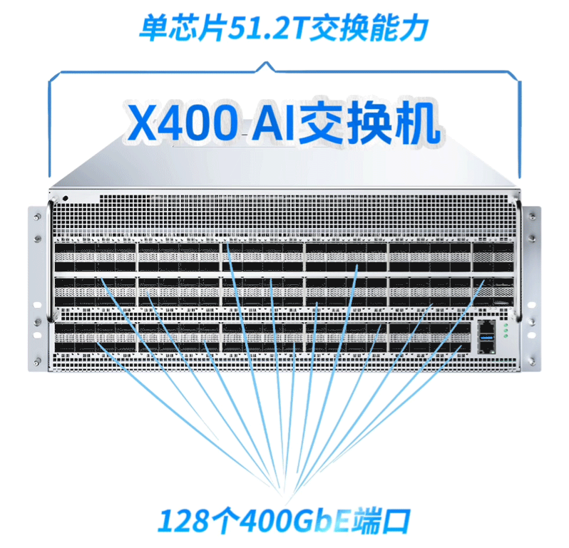 同时,X400交换机遵循S3IP-UNP规范设计,支持开源SONiC和第三方网络OS,对希望构建超级AI算力系统的客户,都具备极大的灵活性。