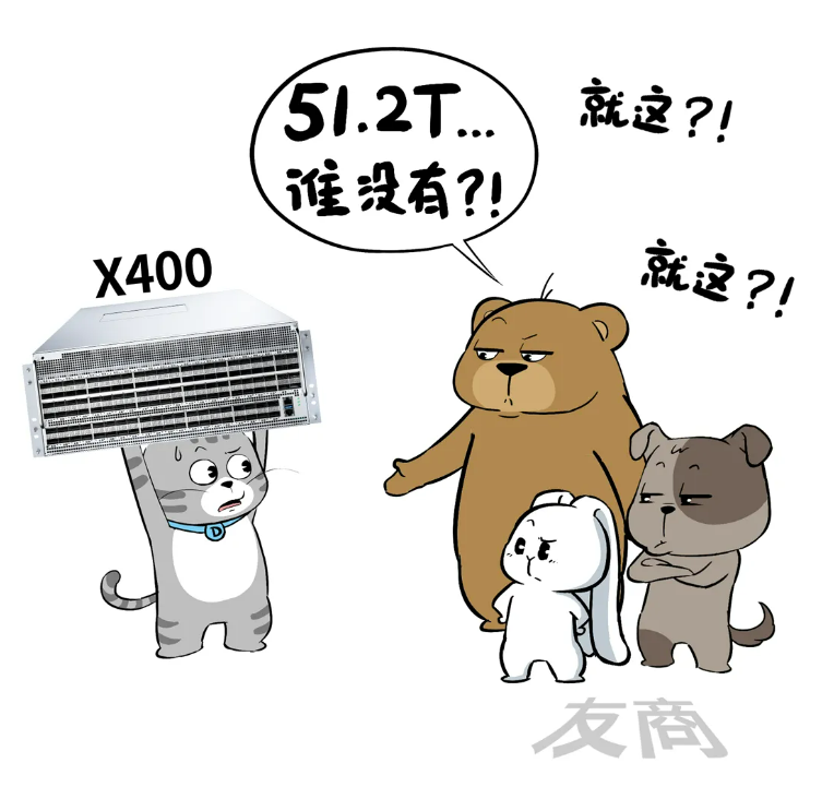这款叫做X400的交换机,端口规格是128×400G,看起来似乎“平平无奇”。