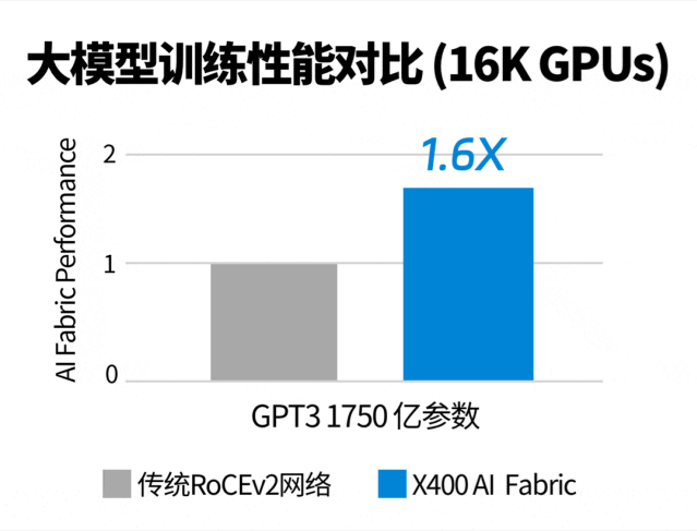 16000张GPU卡环境,训练1750亿参数的GPT3,X400交换机吊打传统RoCE网络。