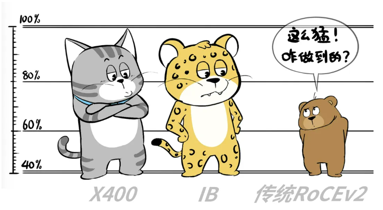 这意味着,基于X400交换机构建的以太网,大模型训练性能可以完全对标同速率的IB网络。