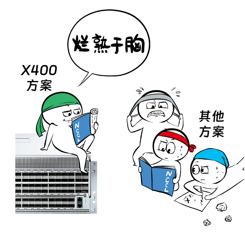 X400和IB一样,与NCCL天然无缝衔接,而其他交换方案需要对NCCL进行额外修改和优化。