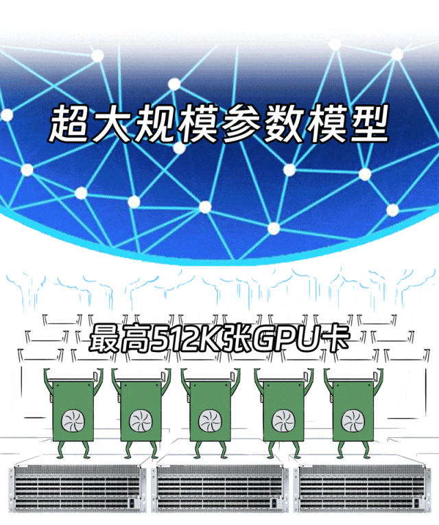 浪潮信息提供了端网协同的X400 AI Fabric方案,即插即用,最大支持512K张GPU的AI算力系统。