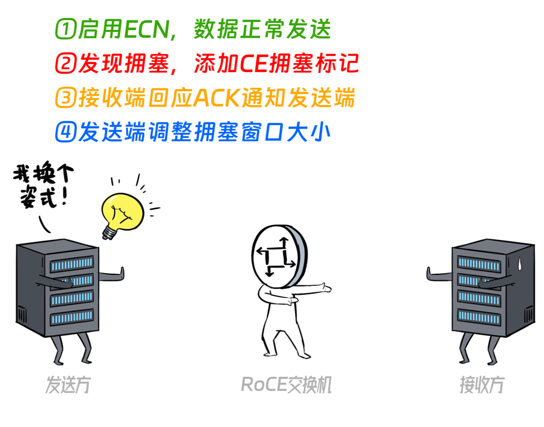 ECN是一种网络拥塞通知和管理机制,它在监测到网络中即将发生拥塞的时候,不会将报文丢弃,而是添加拥塞标记,让发送方动态调整拥塞控制窗口(CWND),从而避免拥塞。
