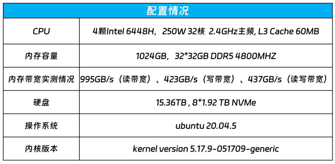 ● 带宽:搭配DDR5的内存,则可以实现4800MHz × 8bit × 8通道 × 4颗 ÷ 1024 = 1200GB/s的理论上带宽。实测结果显示,读带宽为995GB/s、写带宽为423GB/s,以及读写带宽为437GB/s。
