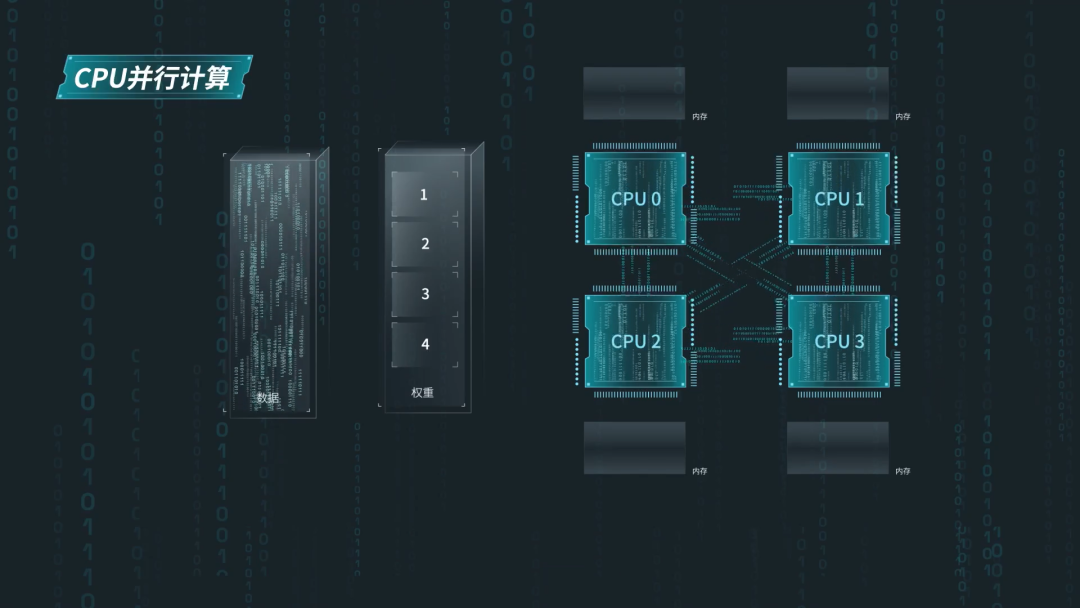 如此一来,通用服务器中的4颗CPU便可同时获取算法权重,进行计算加速。