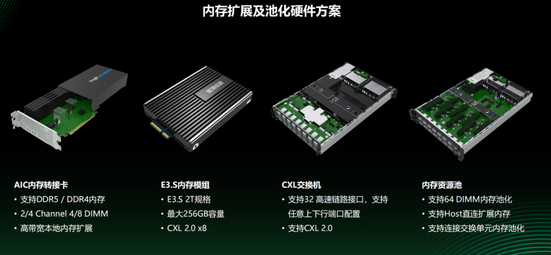 首先看全球领先的IT基础设施产品、方案和服务提供商浪潮信息。据了解,浪潮信息从2022年开始就推出相关的CXL产品,具体而言就是CXL1.1时代的内存远端扩展以及CXL 2.0时代的内存池化硬件等解决方案。当中,后者更是有望在未来的服务器应用中扮演重要的角色。
