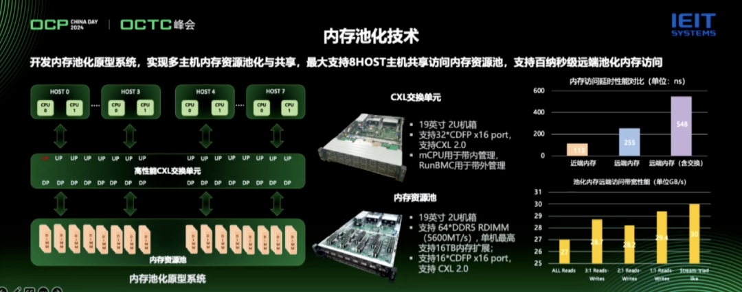浪潮信息内存池化项目负责人陈曦介绍说,从硬件角度看,这本身就是一个很难的技术,因为在实现过程中,需要考虑到互联的损耗、整机系统的统一管理以及资源的调度。从固件和软件的层面看,如何根据应用需求动态调度这些内存资源,让CXL的性能发挥到最优效果,也是需要重点解决的问题之一。所以针对内存池化应用,一定是靠软硬件协同设计实现,浪潮信息作为全球TOP服务器系统厂商,带领厂商及各个合作伙伴,持续探索先进技术,推动技术实践落地,让我们的数据中心更绿色、更高效、更智能。