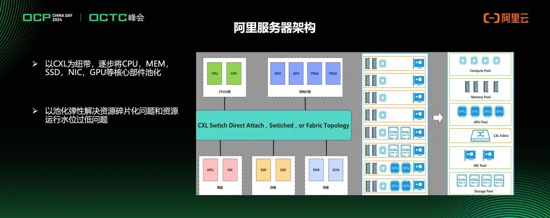 除了英特尔以外,作为方案提供商的浪潮信息,和软硬件全套应用部署及行业标准最大推动者之一的阿里云,也不遗余力地参与到CXL的推广中。