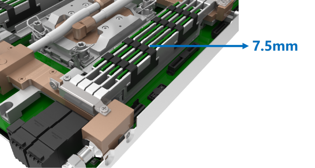 步入液冷时代,CPU液冷技术已逐渐成熟,随着系统性能的不断提升,对内存性能及数量的要求越来越高,而受主板空间限制,内存间距越来越小。最新第五代英特尔®至强®可扩展处理器平台支持的最窄内存间距仅为7.5mm,相比原来最高的10.7mm,缩减了30%。由此,散热功耗也随之上升,如DDR5的散热功耗可达15W,传统风冷散热将难以满足需求。尤其是在相同配置下,液冷服务器内CPU采用冷板散热,无CPU风冷散热器,导致流入内存模组的风量减少,内存风冷散热将面临更加严峻的挑战。