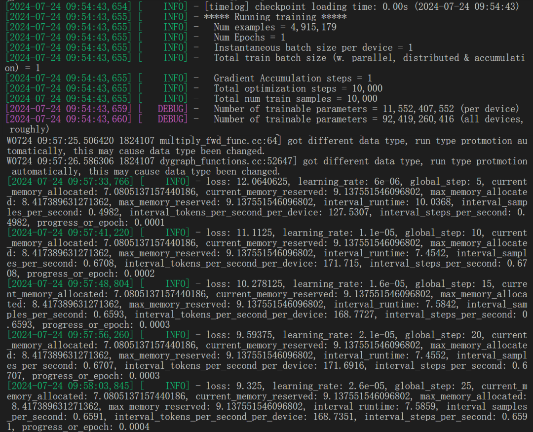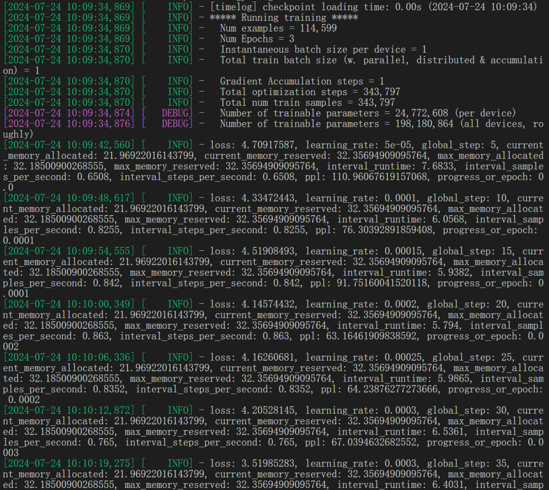 以源2.0-51B模型进行Lora微调为例,输出如下: