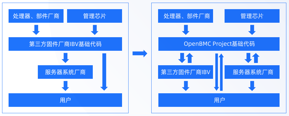 在开发模式上,OpenBMC核心模块遵循Apache2.0许可证,鼓励全球开发者自由使用、修改与分发代码,打破了传统BMC的封闭开发格局,为产业链上下游企业联合创新开发标准化、智能化和精细化的固件平台提供了可能,缩短了从芯片到算力系统的研发验证测试周期,拓宽了服务器系统厂商与最终用户的选择范围。