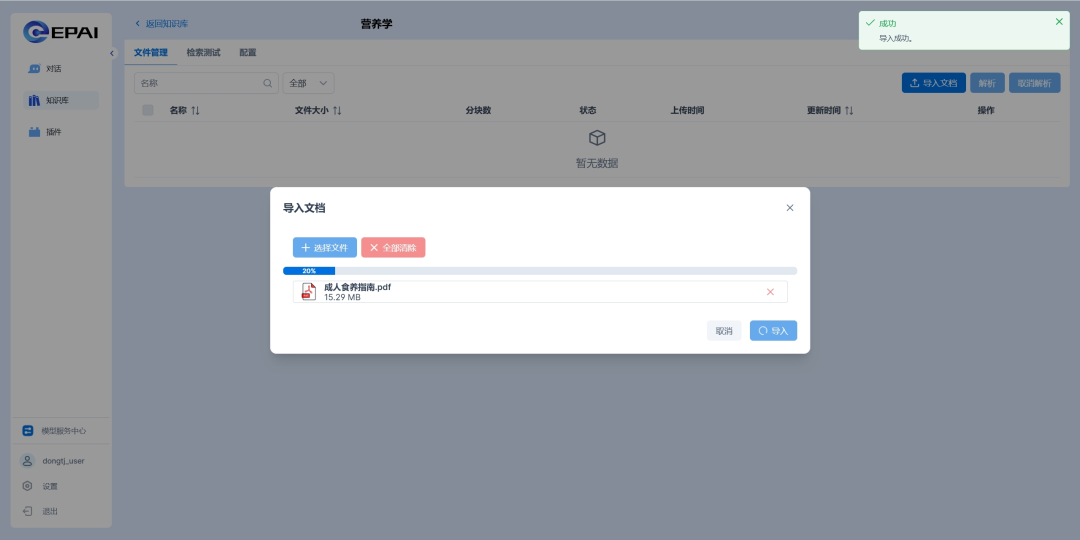 元脑企智EPAI适配PDF、TXT、DOCX等多类文档格式上传解析,可深度处理文档内容,通过强大数据清洗和灵活的知识分块,帮助企业建立高质量私域知识库,并支持复杂问题、大型数据集或跨多个文档查询。