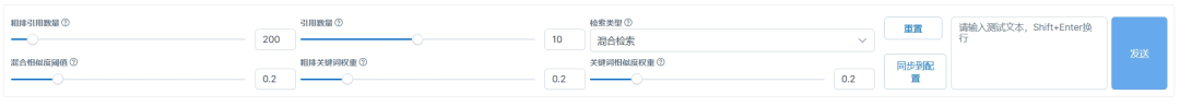 配置好检索参数后,用户可以进行检索测试,以验证文档分块和检索效果。在检索测试界面,用户可以输入测试文本,查看检索结果。