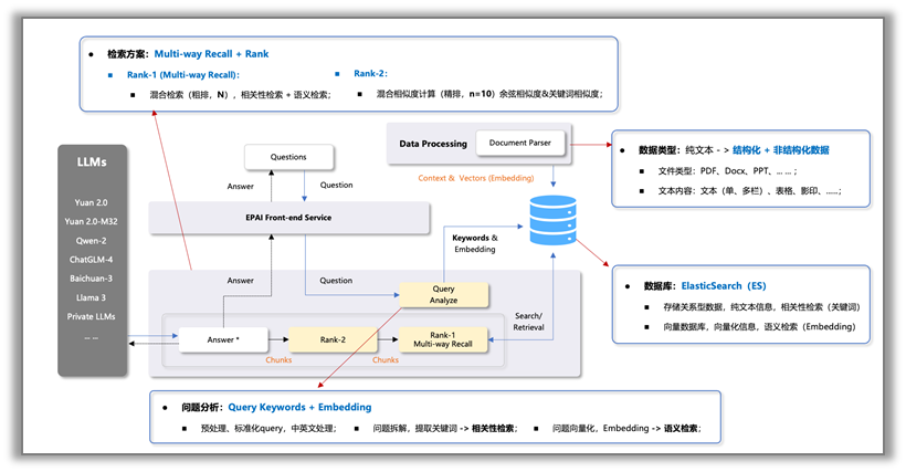 为了帮助企业提高知识利用效率,浪潮信息深入分析并结合多环节的技术优化实践,在企业大模型开发平台元脑企智EPAI中提供端到端的RAG系统解决方案。该方案内置了经过验证的最佳实践,帮助企业减少复杂的技术试错成本,快速构建企业知识库,提升知识管理效率与性能。