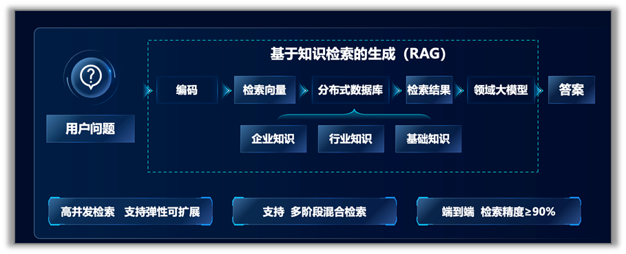 4. 结合领先的混合检索与结果重排技术,端到端检索精度超过90%。同时支持检索信息溯源、跨知识库和跨语言检索,既能智能提取和精准定位原始信息,提高系统透明度和验证性,又能跨领域整合知识,满足全球化业务需求。