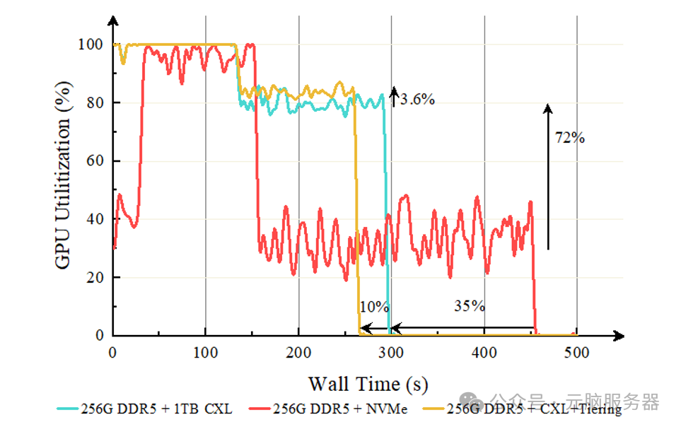 在智能客服、智慧园区等AI推理场景下,元脑服务器CXL内存池化方案为运行更大参数AI模型提供了更高容量和性能的内存支持。实测数据显示,使用CXL扩展内存后,应用的GPU利用率提升72%,相同数据集的推理耗时缩短35%;结合内存分层技术后,应用的GPU利用率可再次提升3.6%,相同数据集的推理耗时进一步缩短10%。