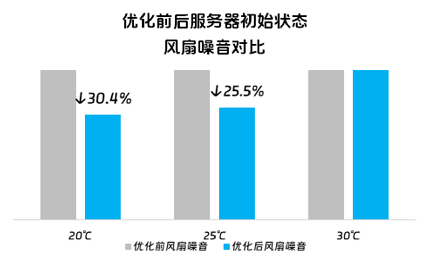 浪潮信息首创服务器开机3秒智能控温技术,通过BMC Linux/RTOS异构双系统并行管理技术,实现了上电即开机,开机时间缩短一半以上。同时,该技术通过实时感知环境温度,动态调控风扇转速,噪音比优化前最大下降30.4%,开机功耗也可大幅降低。