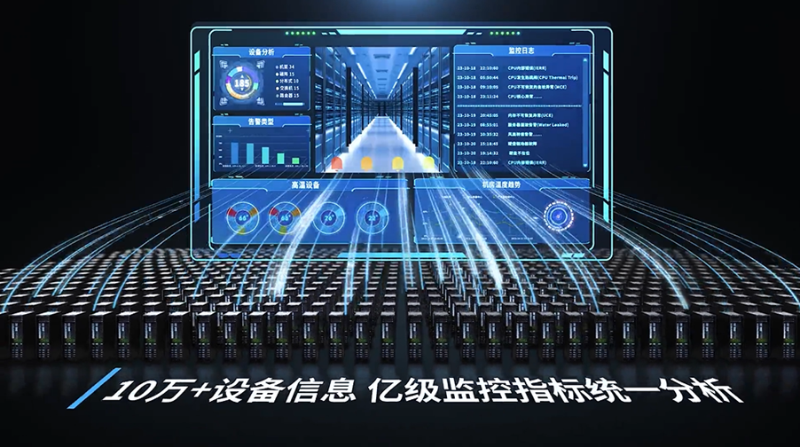 以拥有10万+设备的大规模数据中心为例,每日产生高达近30TB的设备运行状态、亿级监控指标、数千条告警推送等,如何秒级反馈海量并发需求,保证管理平台稳定运行,如何避免将每秒近千条的大规模设备告警风暴强塞给客户,进行根因定位并避免误报、漏报,这些挑战正伴随服务器、存储和网络设备规模的持续增长,成为超大规模数据中心管理亟待解决的难题。