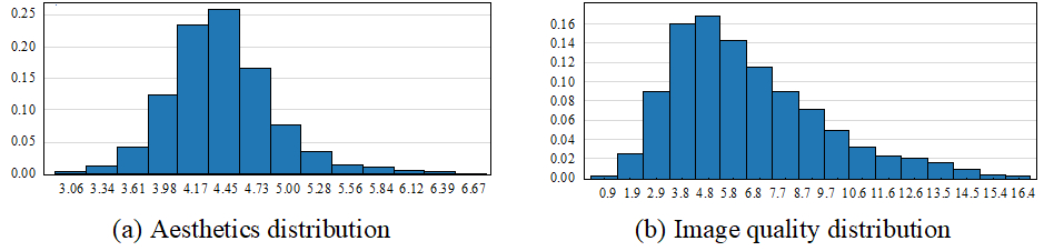 通过美学评分与图像质量双重筛选机制(见下图),DropletVideo-10M中95%视频达到专业影像审美标准(美学评分>3.5),78%片段具备影视级画质(质量评分>4.0)。这种“艺术价值+技术参数“的双重保障,有效规避了低质数据导致的画面抖动、形变等问题。