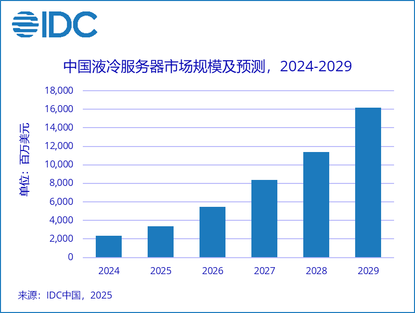 在全球数字化与智能化飞速发展的当下,液冷技术正成为各行各业关注的焦点,在全球范围内的渗透率稳步提升。中国液冷市场也展现出强劲的增长势能和巨大发展前景,IDC预计,2024-2029年中国液冷服务器市场年复合增长率将达到46.8%,2029年市场规模将达到162亿美元。