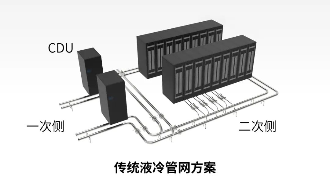 AI时代,先进算力 “更高更快” 的部署需求推动数据中心朝向高密化发展,液冷成为新型数据中心的重要选择。液冷管网作为液冷系统的“血管网络”,是系统 “生命维持” 的核心枢纽,而传统液冷管网方案采用大型环网架构,部署难度高,施工周期长达数周,导致液冷系统的部署速度无法匹配用户对先进算力快速部署和业务快速上线的需求。