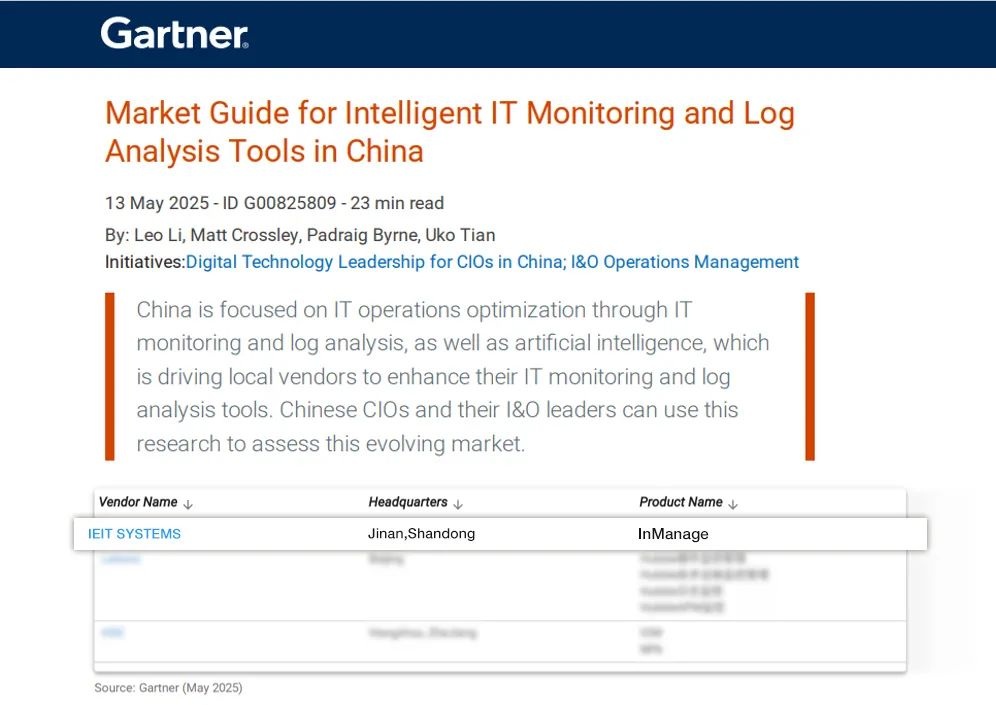 日前国际权威研究机构高德纳(Gartner)发布《中国智能IT管理和日志分析工具市场指南》,浪潮信息凭借前瞻的技术布局和领先的超大规模基础设施运维能力,入选中国智能IT管理和日志分析工具市场标杆厂商,一同入围的还有阿里云、腾讯云等云服务提供商。
