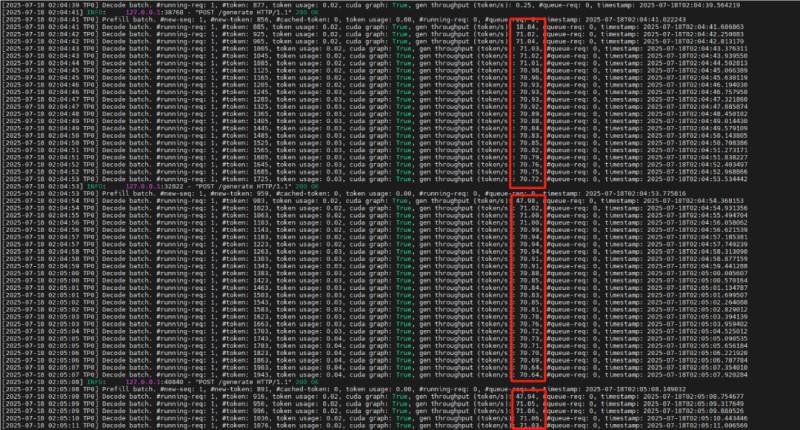 SGLang启动K2推理服务,用户交互时的解码速度