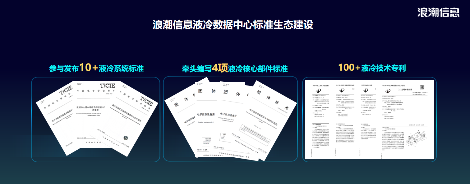 近年来,浪潮信息积极牵头液冷专利与标准建设,助推液冷行业的良性发展。截至目前,浪潮信息拥有100多项液冷技术领域核心专利,已参与制定与发布10余项冷板式液冷、浸没式液冷相关设计技术标准。由浪潮信息牵头的国内首批冷板式液冷数据中心核心部件标准已通过项目评审和论证,在开放计算标准工作委员会(OCTC)获批立项,涵盖冷板、连接系统、冷量分配单元、监控系统等部件,填补了冷板式液冷数据中心标准的空白,将进一步加速液冷产业的快速发展及液冷技术的大规模普及。此外,由浪潮信息与英特尔联合编写的《冷板设计与可靠性白皮书》已贡献至全球开放计算组织OCP基金会,白皮书详细阐述了冷板系统的构成、技术要求、检验规定等内容,对液冷部件的设计、生产、测评,以及液冷技术在数据中心的推广应用具有重要指导意义。