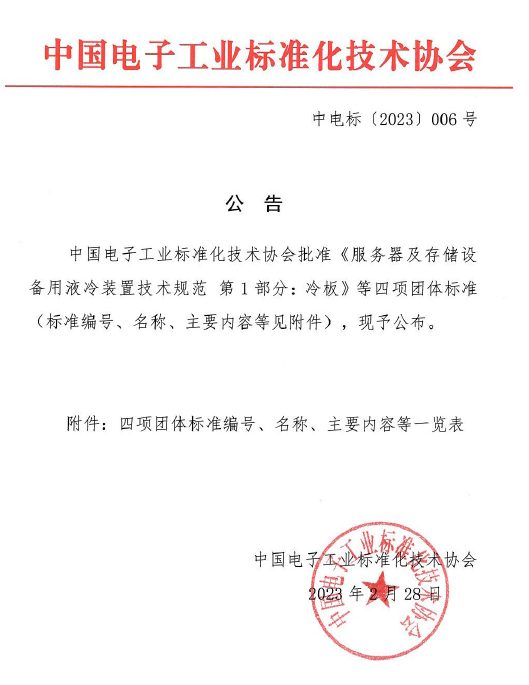 近日,《服务器及存储用液冷部件技术规范第1部分:冷板》团体标准在中国电子工业标准化技术协会开放计算标准工作委员会(OCTC)正式发布。