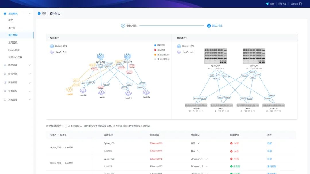 网络拓扑图形化规划:智算中心的网络拓扑结构复杂,纯手动配置时间长且容易出现错误。ICE智能运管平台可基于数字孪生技术构建AI网络拓扑实时仿真平台,为手动配置提供图形化界面,实时验证网络虚拟拓扑与实际设备端口拓扑连接情况,降低错配影响,提高网络部署效率,优化资源分配。
