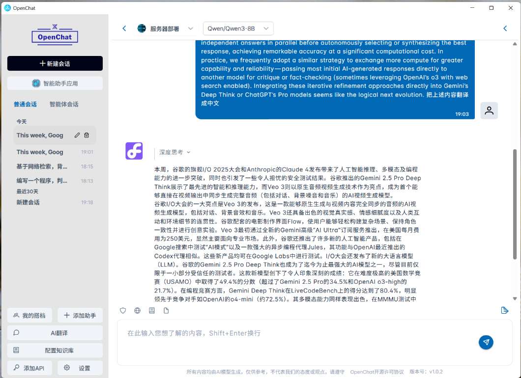 基于OpenChat、ChatBox或CherryStudio等UI客户端,用户可以方便地访问在服务器上部署的DeepSeek 服务,并可以基于个人文档构建知识库和实现联网搜索等功能。