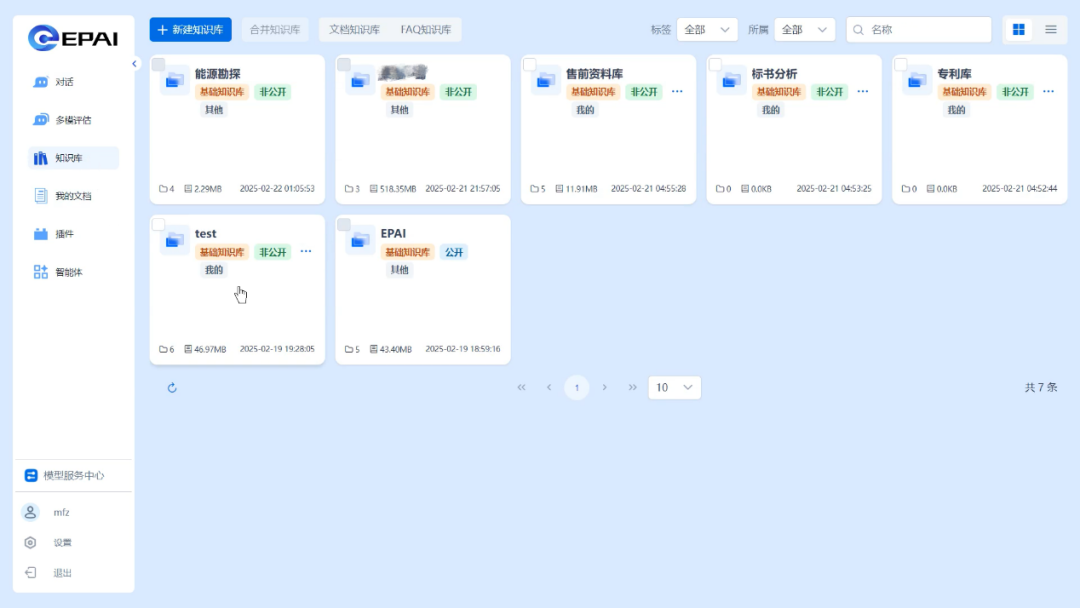 Step 3:登录EPAI模型应用平台,在EPAI管理平台中创建并配置本地知识库。上传企业知识文档(如技术手册、解决方案、配置清单等),配置知识库的检索与生成规则,确保RAG功能正常运行;