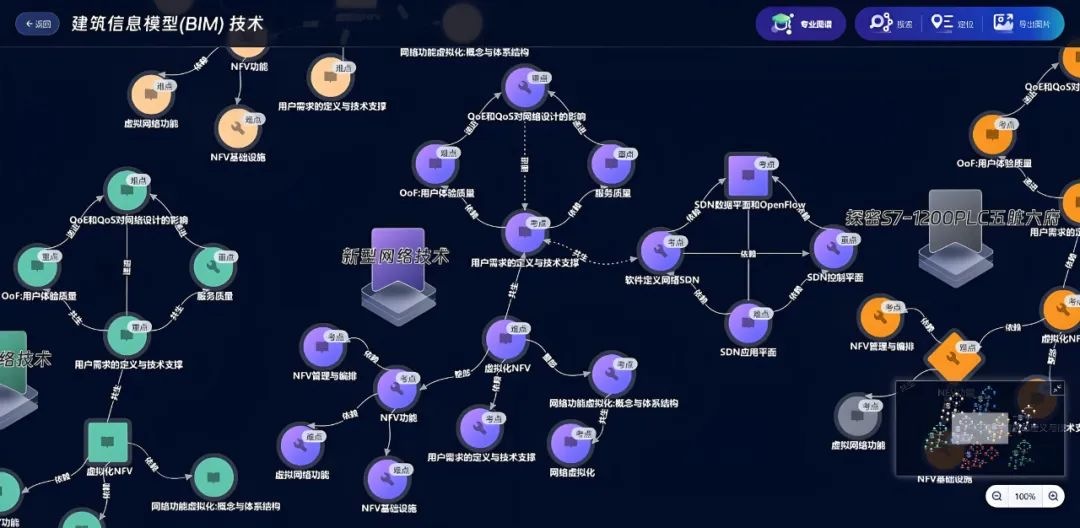 而智慧课程,知识图谱成为学习知识的核心载体。知识图谱打破学科知识原本的线性逻辑,以网状结构呈现知识,就像把教材的线性目录变成了网状结构,知识点之间以包含、派生、相关、并列等逻辑关系进行连接。通过构建知识图谱,学习者不仅可以精准定位知识薄弱点,实现个性化学习,还能够强化知识关联记忆。