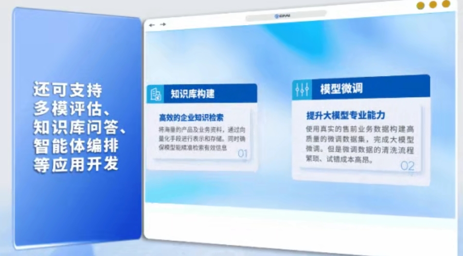元脑企智是简单易用的低代码大模型开发平台,师生可以在该平台上低代码完成数据处理、模型微调、检索增强生成(RAG)、智能体等大模型应用开发全流程,让没有代码基础的经济、法律、社科人文等科系师生也能动手实操大模型应用开发,极大降低了大模型学习与应用的门槛,加速“人工智能+”复合型创新人才培养。